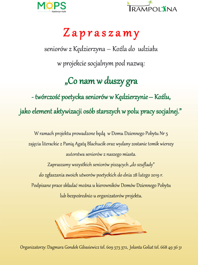 Organizatorzy projektu socjalnego: Dagmara Gondek Gibasiewicz tel. 609 573 372, Jolanta Goliat tel. 668 49 36 31