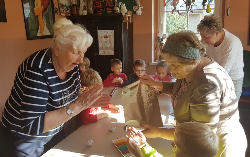 W dniu 16.10.2019 roku dzieci z Publicznego Przedszkola Nr 6 w Kędzierzynie-Koźlu oraz seniorki korzystające z usług Domu Dziennego Pobytu Nr 5 „Nasz dom” w Kędzierzynie-Koźlu uczestniczyli w pierwszym z dziewięciu spotkań w ramach projektu edukacyjnego „Twórcze spostrzeganie świata przyrody poprzez dzieci”.