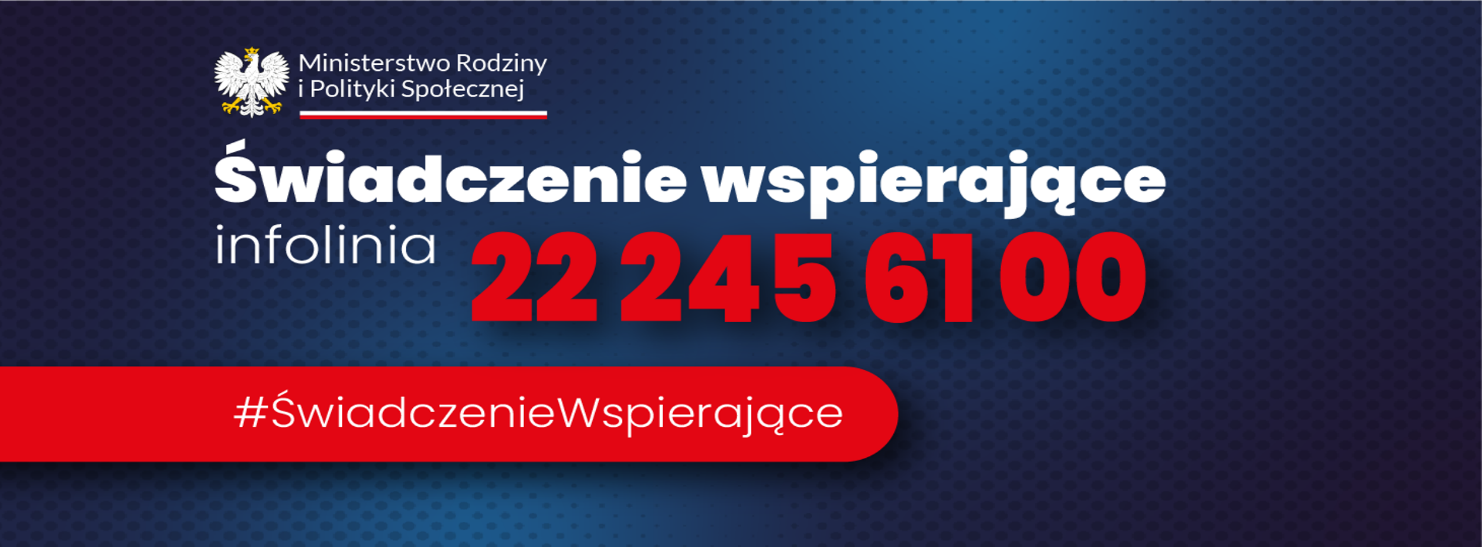 Ministerstwo Rodziny i Polityki Społecznej uruchomiło infolinię dedykowaną nowemu świadczeniu wspierającemu dla osób z niepełnosprawnościami. Pod numerem telefonu 22 245-61-00 osoby zainteresowane mogą uzyskać informacje zarówno na temat wydawanych przez wojewódzkie zespoły decyzji o potrzebie wsparcia, jak i na temat samego świadczenia wspierającego. Świadczenie wspierające wypłacane będzie przez Zakład Ubezpieczeń Społecznych.
